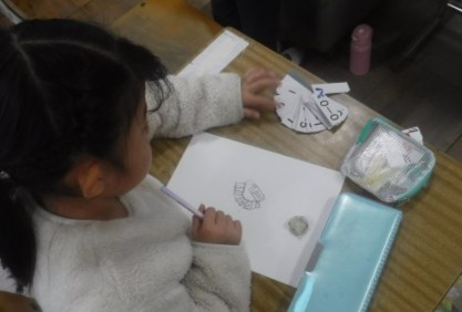 ノートやふでばこ,計算カードなど,自分で選んだ物をよく見て描いていました。
