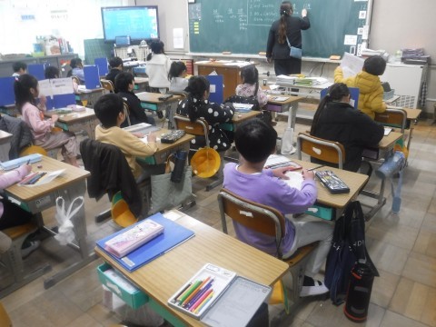 テストをしてから,計算カードをシャッフルして計算の練習をしました。