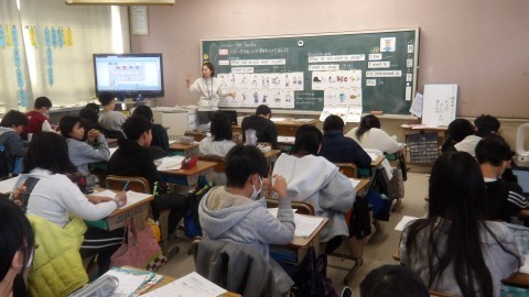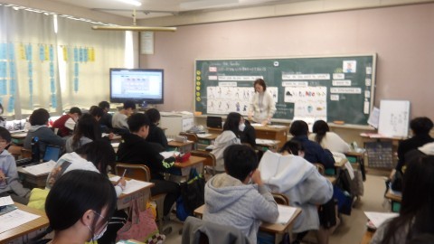 入りたい部活や頑張りたい勉強などを,英語で表現していました。
