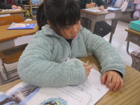 国語では「せかい一の話」というお話を聞いて,おもしろかったところをノートに書きました!その後,お友だち同士でどこがおもしろかったかのか伝え合いました♬