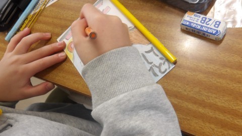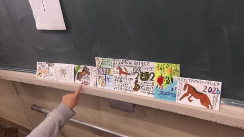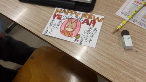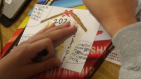 とても一生懸命に年賀状に取り組んでいました。
