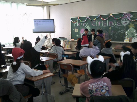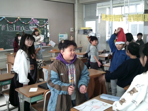 クリスマスに因んだ星やプレゼントのイラストを教室中に隠し,みんなに探してもらっていました。