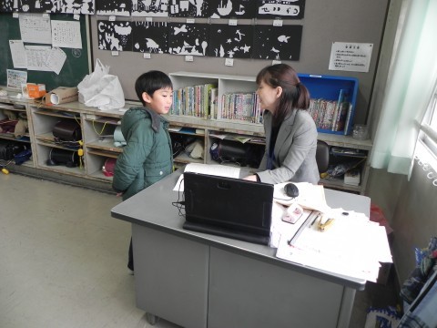 通知表を渡していました。通知表を渡す前に先生から「通知表・成績の意味」について話がありましたが、みんな真剣に聞いていました。