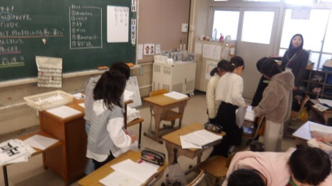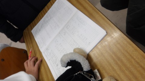 冬休みに取り組んだ自主学習のノートを机の上に置いて,クラスで共有していました。