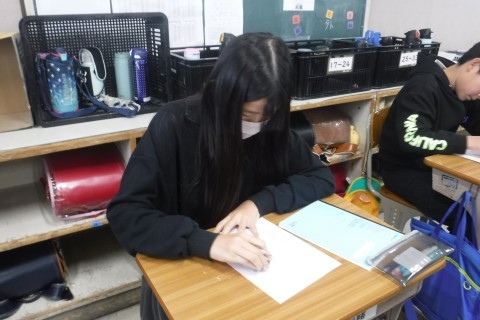 図工の学習で自分の学習道具などをじっくり見て、集中して描いていました。