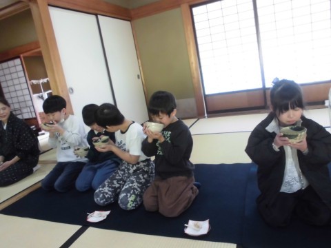楽しみにしていた校外学習でした。茶の湯体験では、和菓子の食べ方やお茶のお作法を教えていただきました。