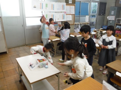 生活の学習です。先日より「昔あそび」をしています。今日は,けん玉,お手玉,こまをしました。こまのひもをまくのに苦戦していました。楽しんでもらえたらいいなと思います☆