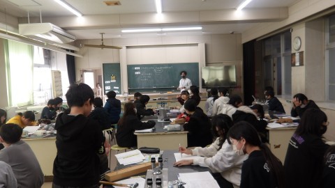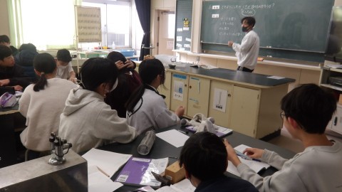 理科室で授業をしていました。