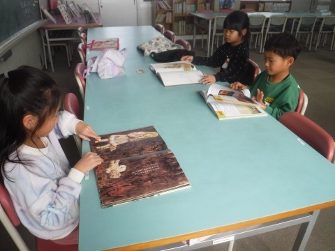 絵本を楽しんだり,図鑑を見たり,静かに読書をしていました。