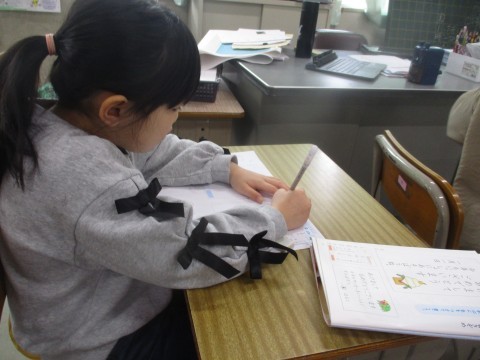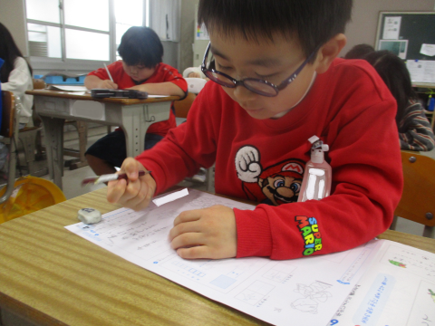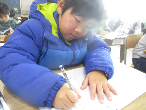 書写の時間では,年賀状をプリントに書きました!初めて年賀状を書く子もいたので,どんなふうに書くのかワクワクしている様子でした♬