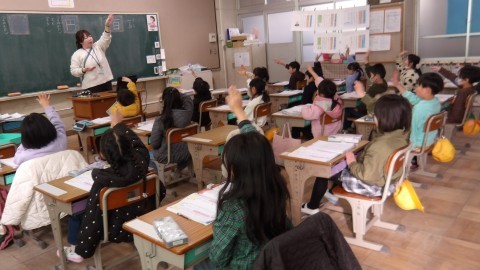姿勢良く書いたり,手をあげたりしていて感心しました。
