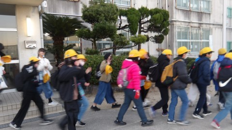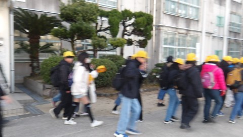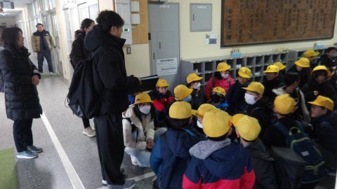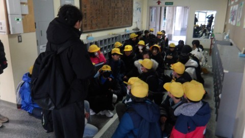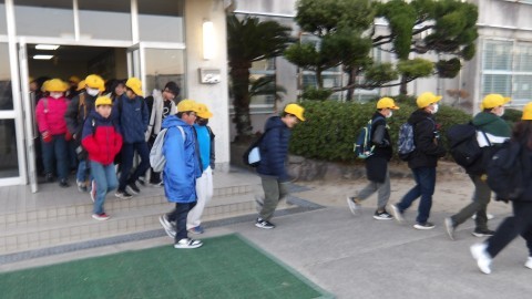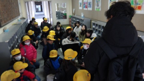 あまりに寒かったので登校した子どもたちの待機場所を校舎内に変え,