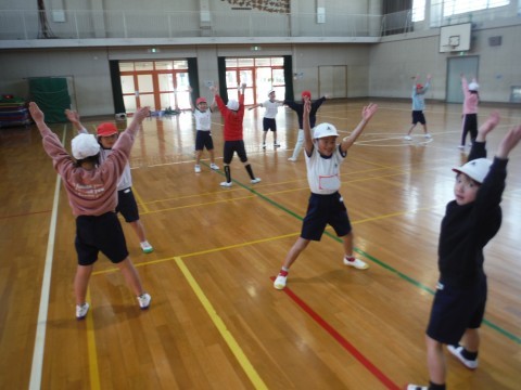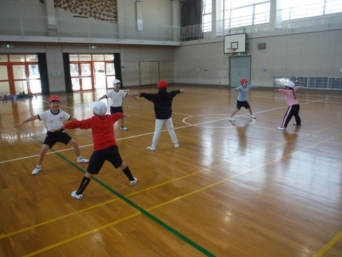 1月22日(木) 1年2組 公開日 2026/01/22 更新日 2026/01/22 1年生 体育「リズムで のりのり!」の学習です。リズムや音楽に合わせて体を動かしました!写真は「体でじゃんけん」をしているところです。小さくだんごのようになっているのは「グー」です。手が上に上がっているのが「チョキ」です。手が横に伸びているのが「パー」です。今日のじゃんけんのポーズは体育係さんに決めてもらいました☆腕を伸ばしたり,足を曲げたりと体の動かし方をしっかり考えて動くことができました!! +1