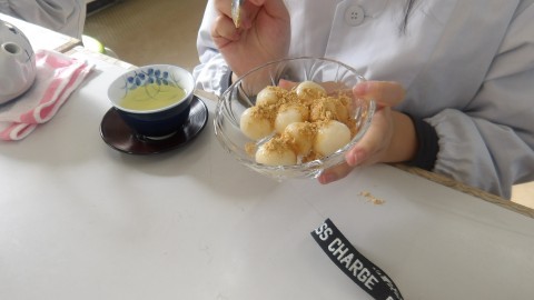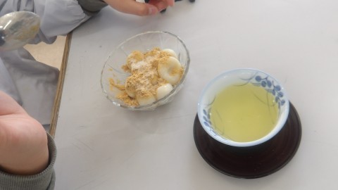 きな粉をかける子,シンプルにさとうで食べる子,どちらも美味しそうでした。