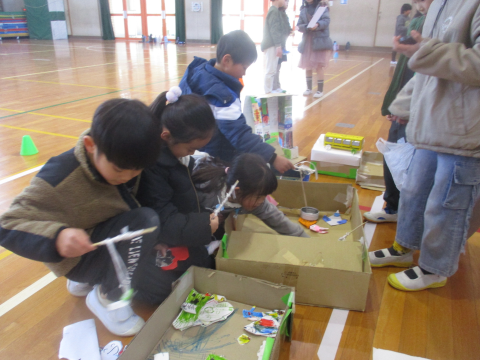 一年生を招待して,「おもちゃランド」を行いました!これまでに頑張ってつくったものを喜んで遊んでもらえて,うれしそうな様子でした♬