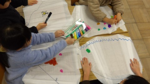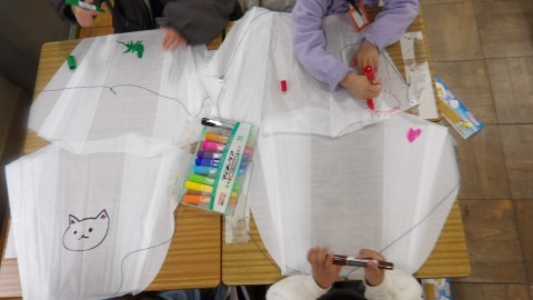 たこを作るようで,絵を描いていました。