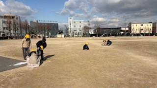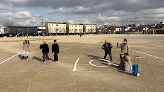 1a(1アール)の大きさを運動場に描き,大きさを体感しました。