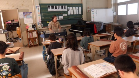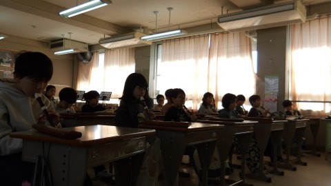 テンポや音の長さの変化にじょうずに合わせながら繰り返し練習していました。