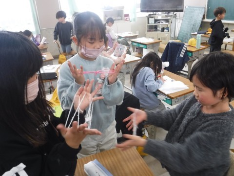終わったら,あやとりをしたり,タブレットをしたりしています。