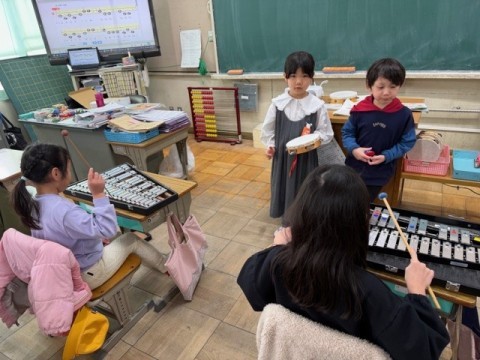 音楽の学習です。合奏「こいぬのマーチ」を練習しました。参観でも発表できるように練習を頑張っています☆