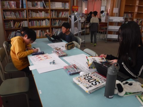 図書室で,絶滅危惧種について調べたり,酸性雨について調べたり,自分が興味をもった環境問題について詳しく調べています。