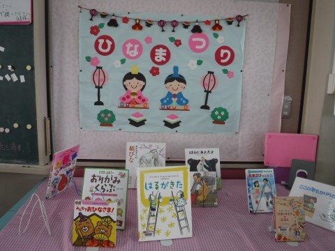 図書室の入り口には,春の本の特集がしてあります。