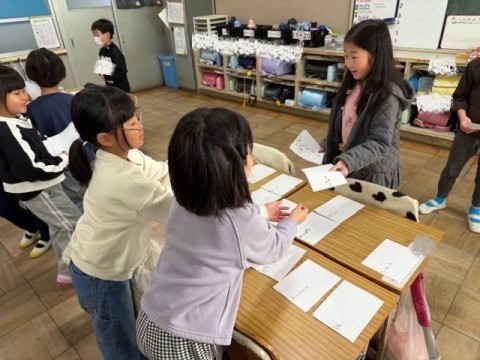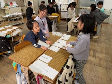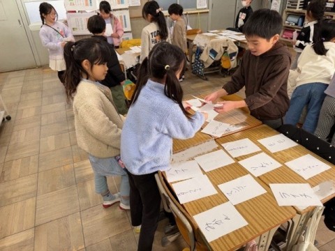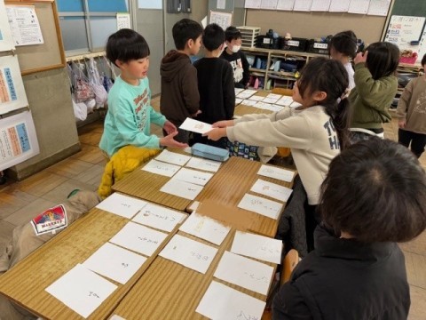 2月12日(金) 1年2組 公開日 2026/02/12 更新日 2026/02/12 1年生 国語「ものの名まえ」の学習です。なまえカードが完成し,おみせやさんごっこをしました!!前半と後半に分かれて,お店番と,お客さんになりました。それぞれのお店で1つお買い物をしました!!お店の人やお客さんになりきっていました☆ +3