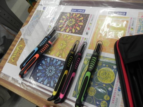 版画に使用する彫刻刀について,使い方や名称も含めて学習していました。