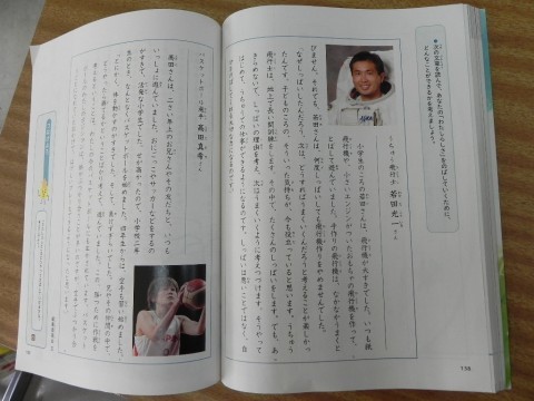 宇宙飛行士の若田さんとバスケットボール選手の髙田さんのお話を読んでいました。