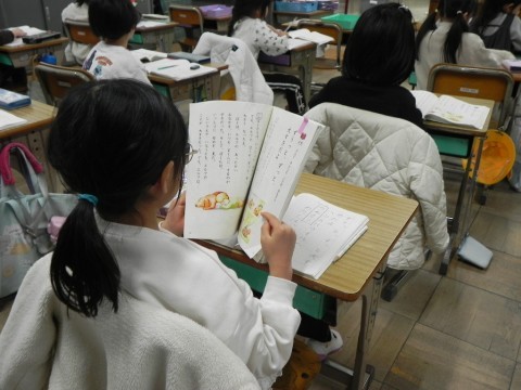 「ずうっと,ずっと,大すきだよ」を読んで感想を書いていました。