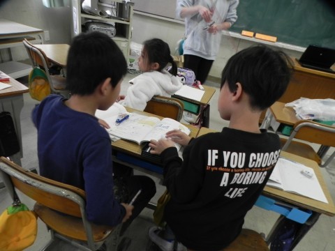ペアで話し合い,考えていました。