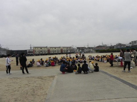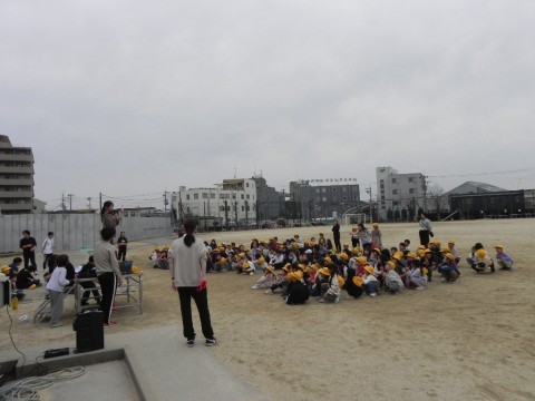 最後に朝礼台の前に集合し,ふり返りをしました。