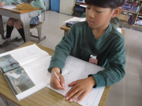国語の授業の様子です!今日は,狼から羊を守る白馬の場面を読み取ることができました♬