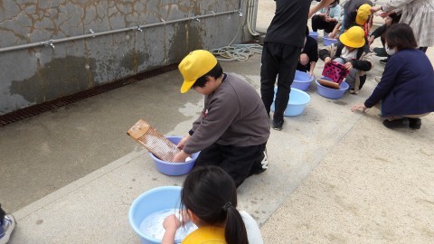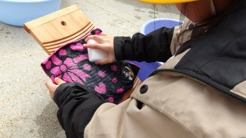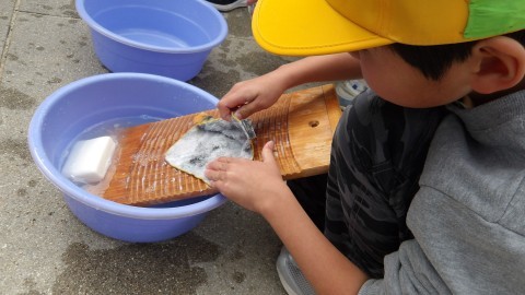 昔の洗濯体験をしていました。