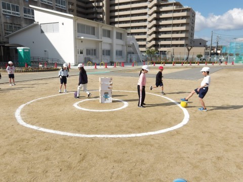 3月10日(火) 1年2組 公開日 2026/03/10 更新日 2026/03/10 1年生 体育「キックサークルまとあてゲーム」の学習です。今日は最初にボールを蹴ってまと(コーン)に当てる練習をしました。その後「ゲーム」をしました。前回よりもまとに当たることが増えてきて,まとを倒すことができたチームもありました!!次はボールを蹴ること,まとをねらうことを重点的に練習して,ゲームに臨みたいと思います☆ +5