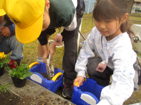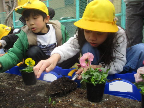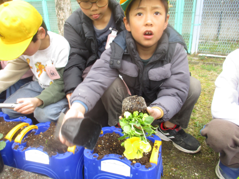 生活では,卒業式にむけてパンジーを植えました!たくさん咲きますように♬