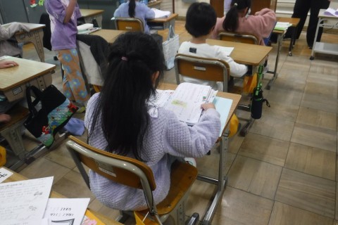 テストを返してもらったり,今までのふりかえりをしたりと学期末に向けてファイルなどにまとめていました。
