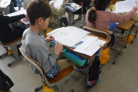 算数のテスト返しをしていました。間違ったところをそのままにせず,しっかりやり直しをして