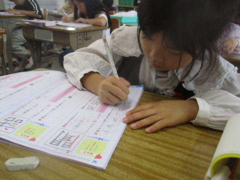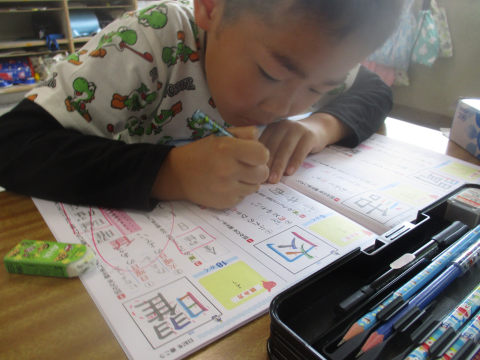 漢字の学習の様子です!今日は4文字習ったので,スピードアップで練習です♬