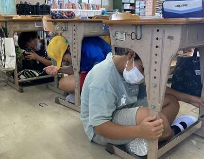 大阪府880万人訓練です。地震が起こったことを想定して、教室での避難の仕方を確認しました。訓練でも本気でできる日置西の子どもたちが、とても素敵でした。