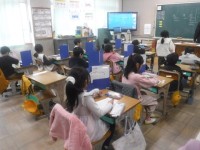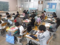 運動場で元気にたこあげを行っていました。けんだまやコマ、たこあげ等、生活科で昔遊びを体験しています。