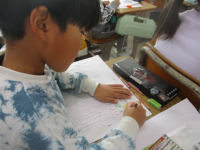 タブレットを使い、学習を行ってます。ドリルパークで算数や国語、漢字の復習をしている人や、世界遺産学習ノートの百舌鳥古墳群のページを見ている人がいました。