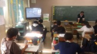 家庭科の学習の様子です。家から持ってきたものを使って、洗濯実習を行いました。