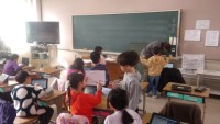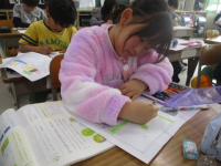 生活科でおもちゃランドを行います。今日は、はじめに遊んだおもちゃのデザインや動き等をグループごとにまとめていました。