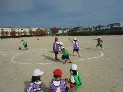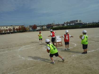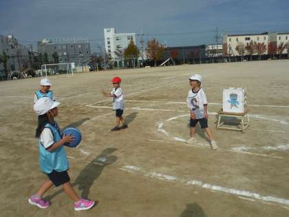 サークル的あてゲームです。とても楽しそうにボールを投げていました。