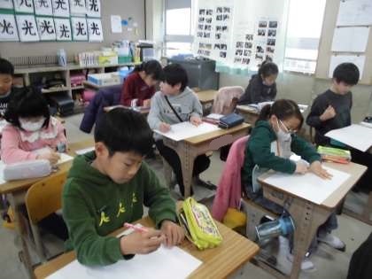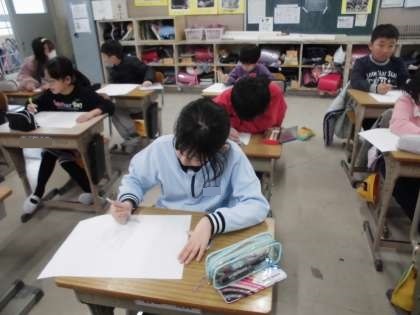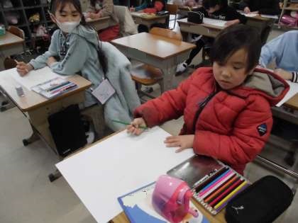 図工の時間に「モチモチの木」を描きはじめました!まずは構図から考えます♬