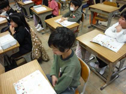 算数です。2けた−1けたの式になる文章問題を行っていました。