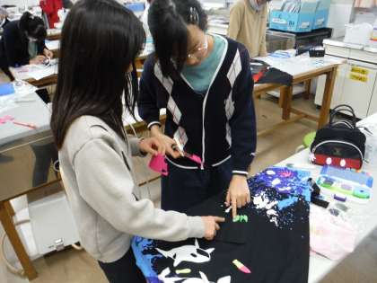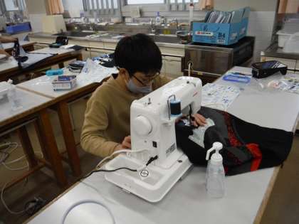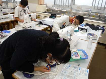 家庭科でエプロンを作っています。もうそろそろ完成間近です。