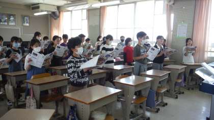 音楽の学習の様子です。きれいな声が出るように、しっかり背筋を伸ばしてから歌っていました。