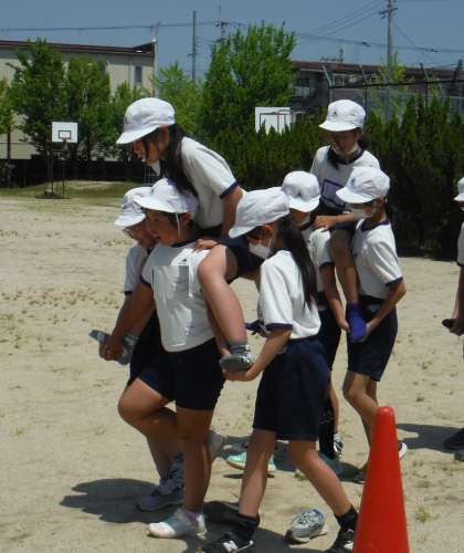 5月17日(金) 5年1組 公開日 2024/05/17 更新日 2024/05/17 5年生 体育大会に向けて、団体競技の練習をしていました。5・6年生の団体競技は騎馬戦です。赤白に分かれて、帽子を取り合います。高学年の迫力ある競技を楽しみにしておいてください。